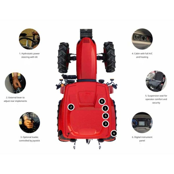 The tractor is fitted with a premium operator cabin, complete with with full AC and heating and an intuitive console comprising all major controls.